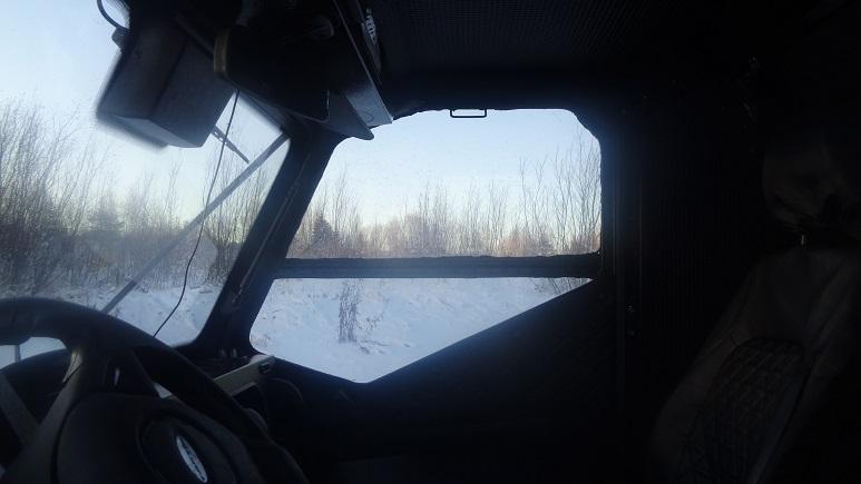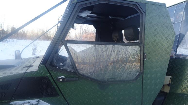 На вездеходе PSM в лесной конторе были лёгкие дверцы из пвх ткани и мягкого стекла, в виду всё время разных пользователей, их порвали и запросили хоть что-то подобие дверц.