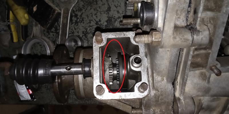Между ДИФ и выходным валиком (на передний мост) есть некий зазор, около 5мм по факту, (красная стрелка на схеме). Вилка блокировки сгоняет муфточку с шлицев ДИФа на шлицы выходного валика и происходит блокировка... или частично происходит? Т.к. толщина (ширина) муфточки 20мм всего, т.е. на половинки валов должно достаться по 10мм контакта , а зазор в 5мм это уменьшает до безобразия. Сколько он долЖон быть на исправно работающей блокировке?