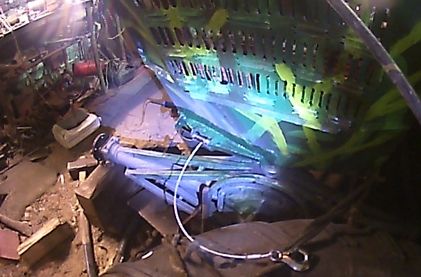 Сначала просекал лист с отгибом высечек и приварными поперечными полосами  изнутри , он выдерживает лобовые удары льдин тяжелее самой машинки  при плюхании в майну . Потом ликвидировал из за того что не держит саму воду .