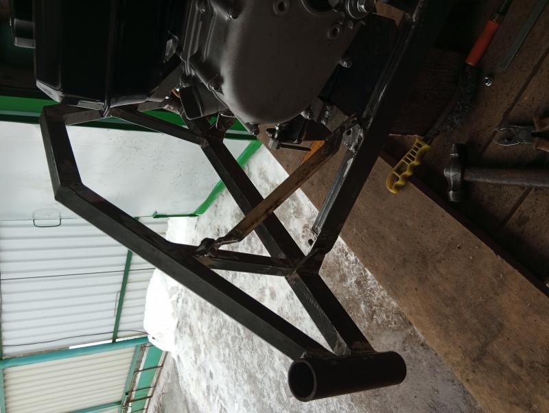Рулевой блок, к нему складывается под моторная рама. Фиксируется укосинами - верх петля, низ быстросъем на эксцентрике (еще едет)