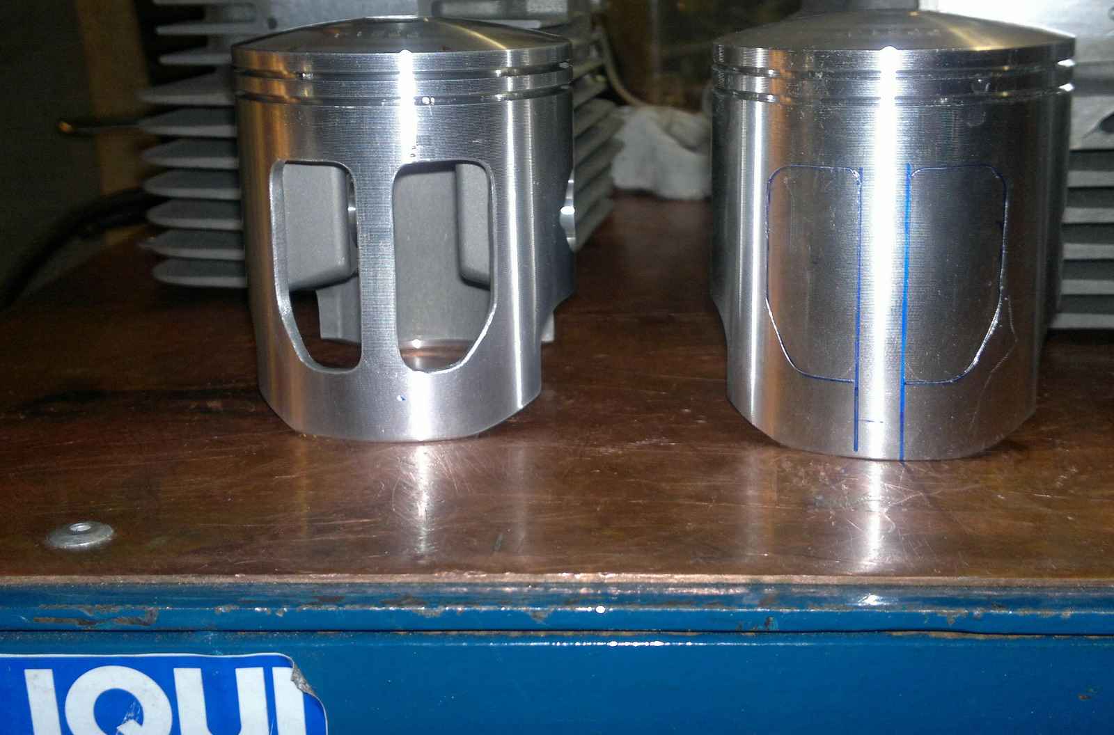 Да окна маленькие на поршне. Сделай так , эти дырдочки все равно что наполовину открытая заслонка в карбюраторе, там же поток газа, Главное в продувочных каналах полируют стенки а тут ставят поперек потока решето, головой то подумайте